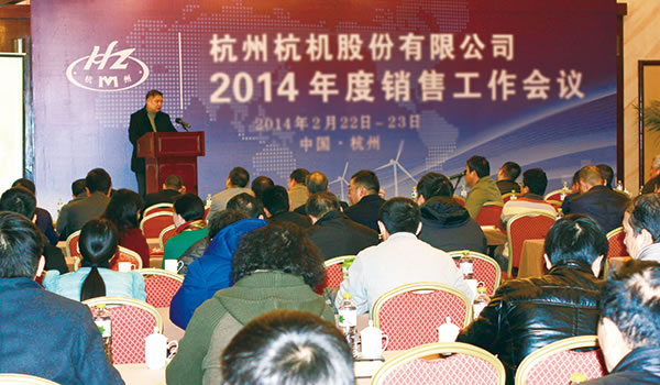 杭機(jī)股份2014年度銷售工作會議于2月22日—23日在杭州藍(lán)天清水灣國際大酒店舉行,來自全國各地的五十多家經(jīng)銷公司的近80名代表參加了會議。