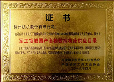 軍工行業(yè)國產(chǎn)數(shù)控機(jī)床應(yīng)用工作專家委員會嚴(yán)格篩選并通過在應(yīng)用現(xiàn)場效果評價(jià),最終確定我公司開發(fā)的MGKF600/8數(shù)控高精度立式復(fù)合磨床列入了軍工領(lǐng)域國產(chǎn)高檔數(shù)控機(jī)床供應(yīng)目錄,杭機(jī)股份將作為軍工采購國產(chǎn)機(jī)床的重點(diǎn)推薦企業(yè)。