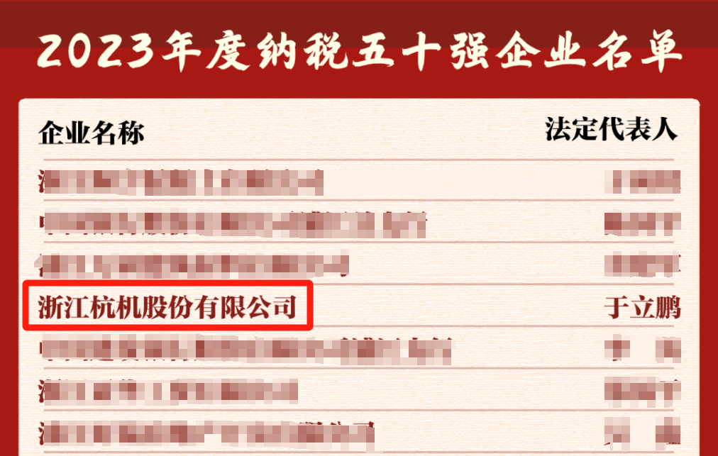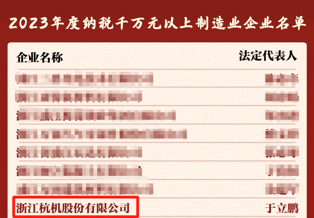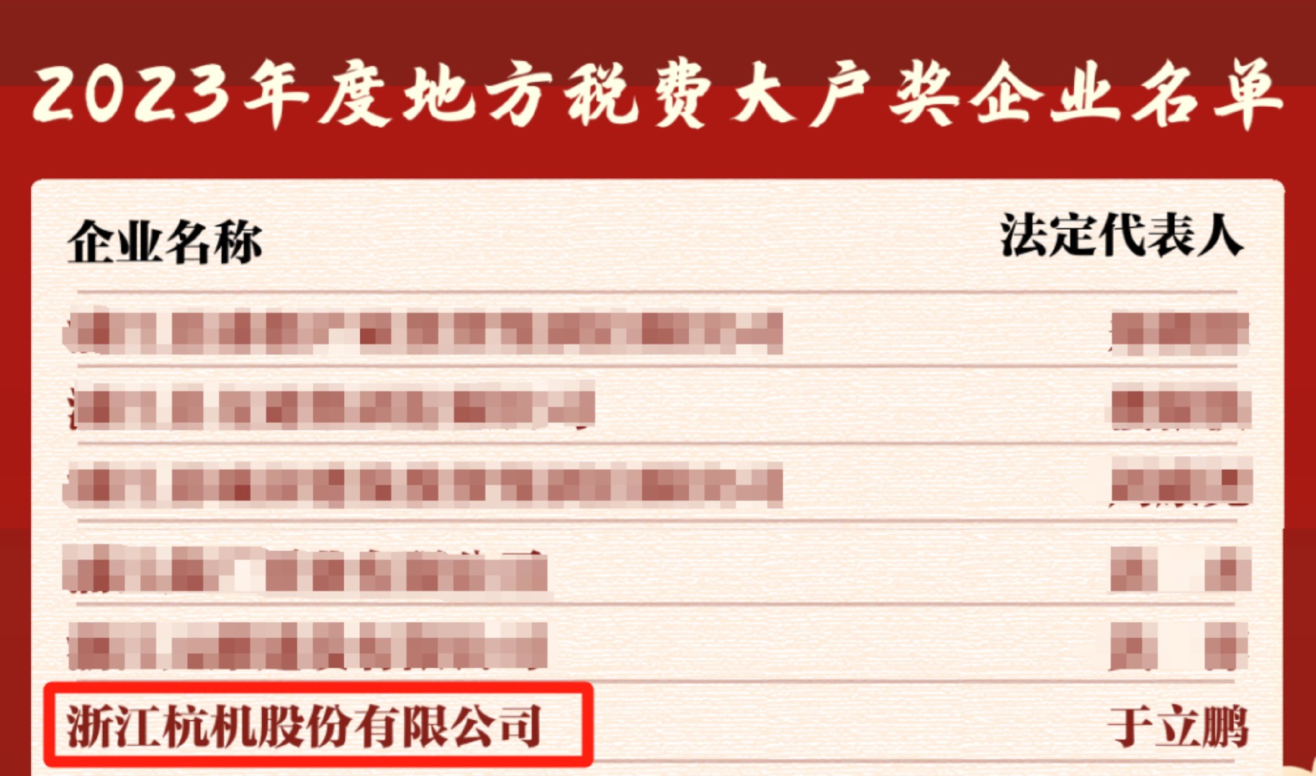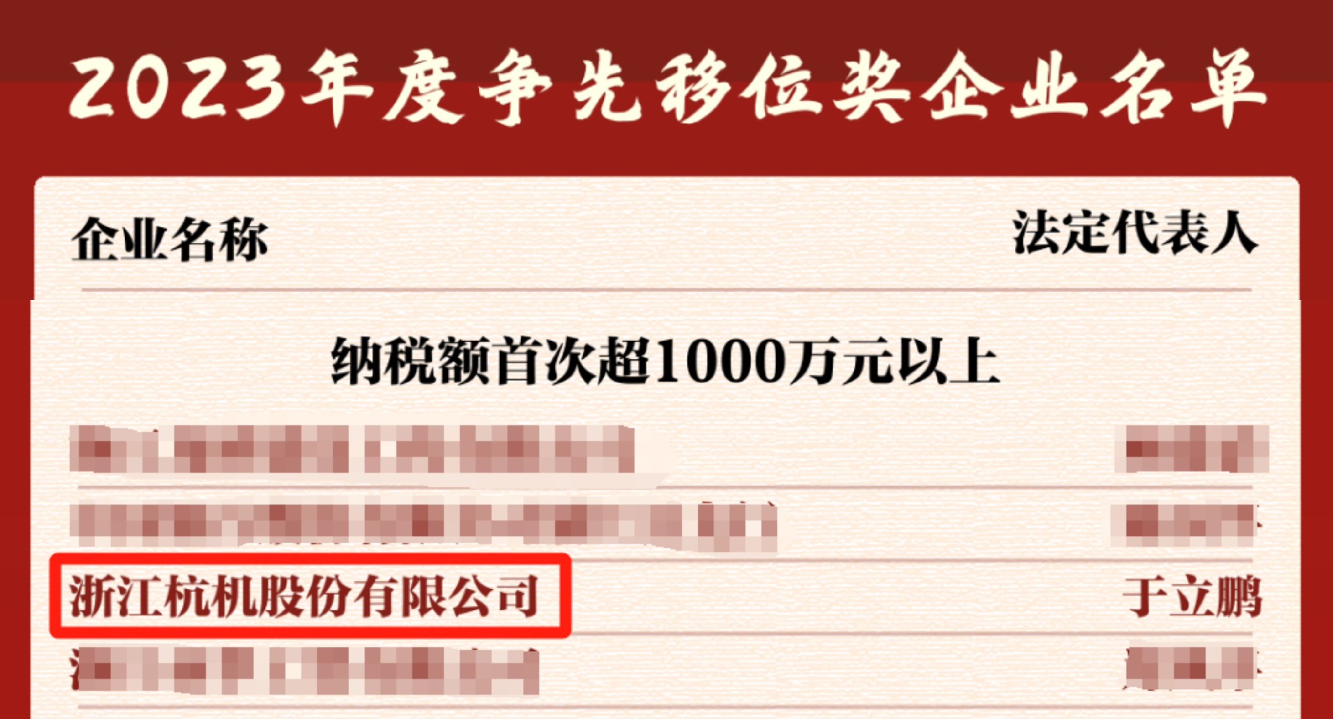 今天下午,浦江發(fā)布2023年度納稅大戶(hù)榮譽(yù)榜單,浙江杭機(jī)股份有限公司多次上榜,榮獲多重獎(jiǎng)項(xiàng)。