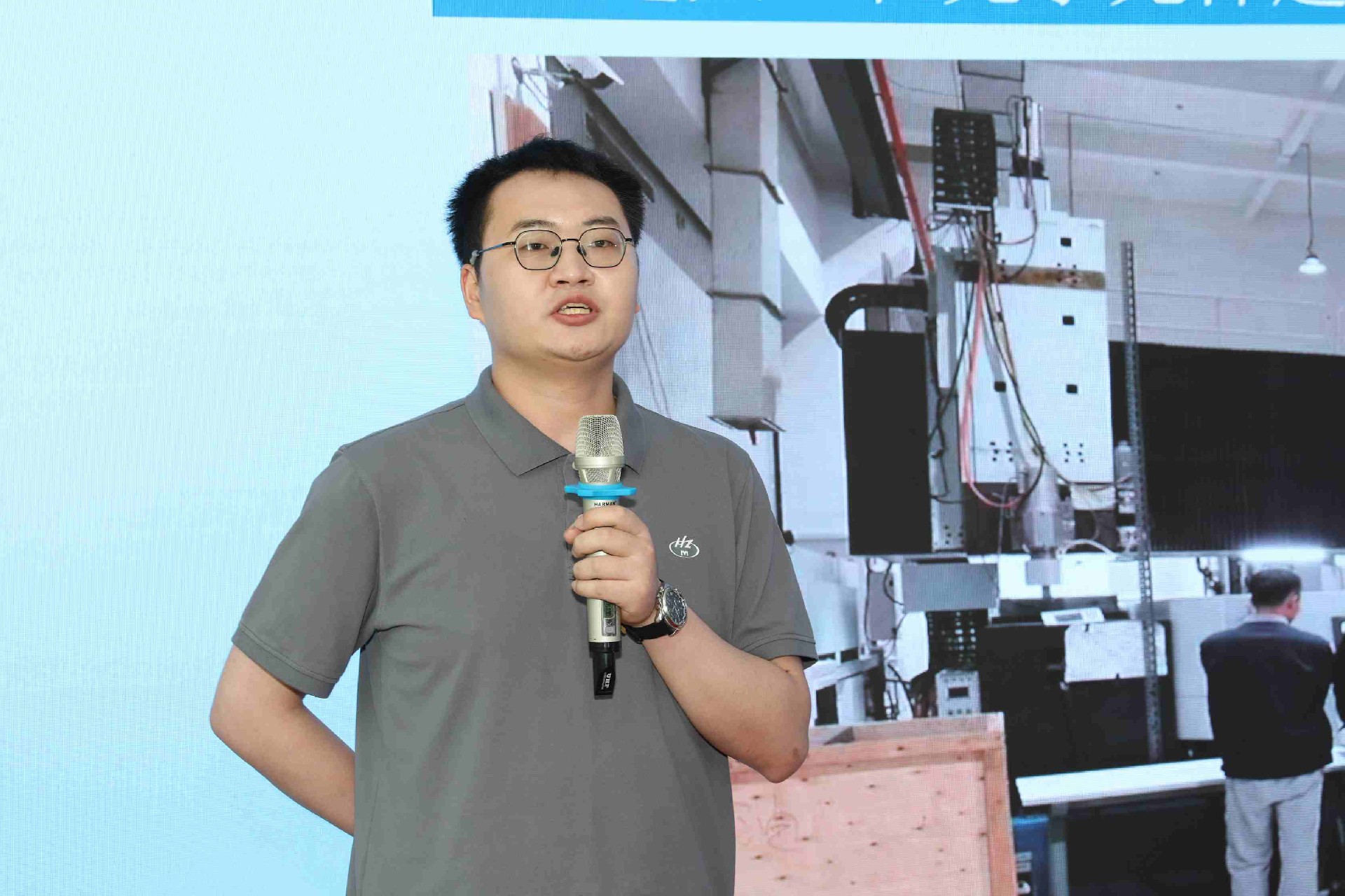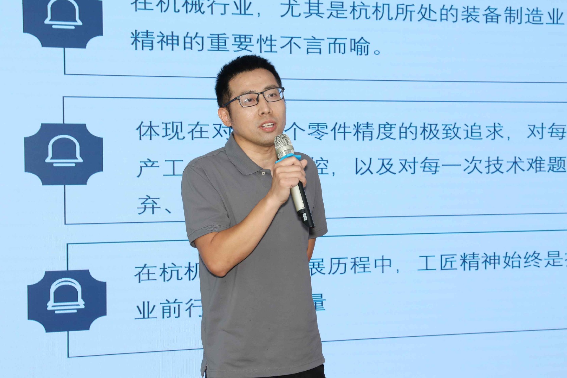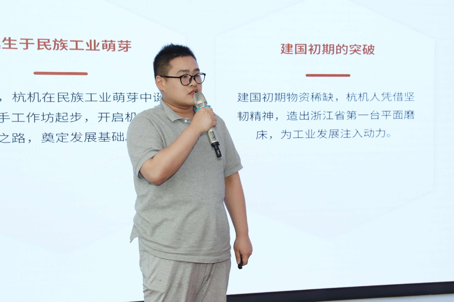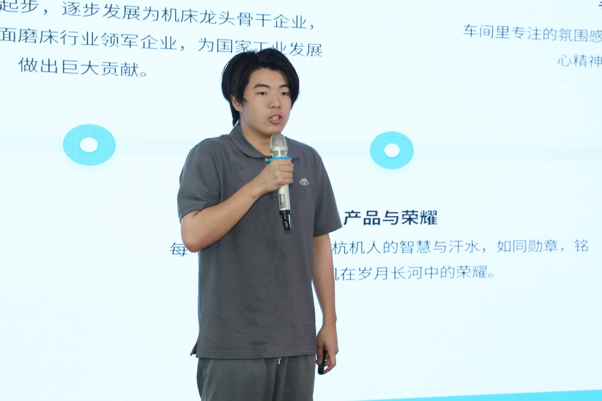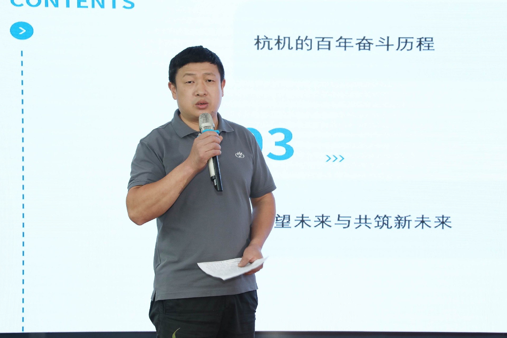 決賽現(xiàn)場,16名來自不同崗位的參賽選手依次登臺。他們中既有扎根車間三十載的老技工,也有青年研發(fā)工程師,更有新入職就感受到滿滿杭機力量的新員工。演講內(nèi)容緊扣“匠心傳承”“智造突圍”“黨員先鋒”等關(guān)鍵詞,配合多媒體視聽呈現(xiàn),引發(fā)陣陣掌聲。